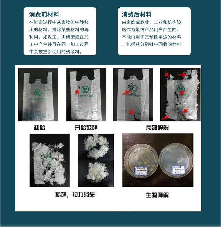 消費前再生膠袋是指在製造過程中從(cóng)廢物流中轉移出的(de)材料。排除某些材料(liào)的(de)再(zài)利用,如返工、再研磨或(huò)在加工中產生並且在(zài)同一加工過程(chéng)中會被重(chóng)新使用的殘餘料。即(jí)不經過消費(fèi)者消費的再(zài)回收利用的膠袋(dài)。