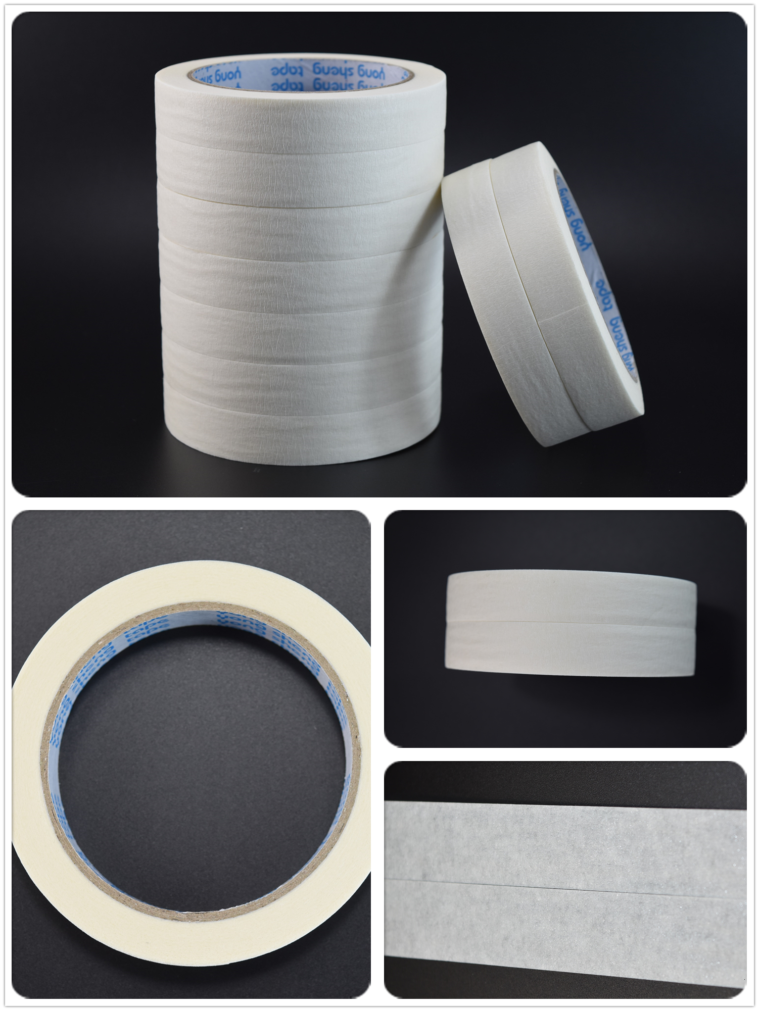 美紋紙膠帶是以美紋紙和壓敏膠水為主要原料(liào),在美紋紙上塗覆壓敏(mǐn)膠粘劑,另(lìng)一麵塗以防粘材料而(ér)製成的卷狀膠粘帶。具有耐高溫(wēn)、抗(kàng)化(huà)學溶劑佳、高粘著力、柔(róu)軟服貼和再撕(sī)不留殘膠等特性。行業(yè)通稱美紋紙壓敏膠粘帶。產品符合ROHS環(huán)保要求。英文名MASKING TAPE。