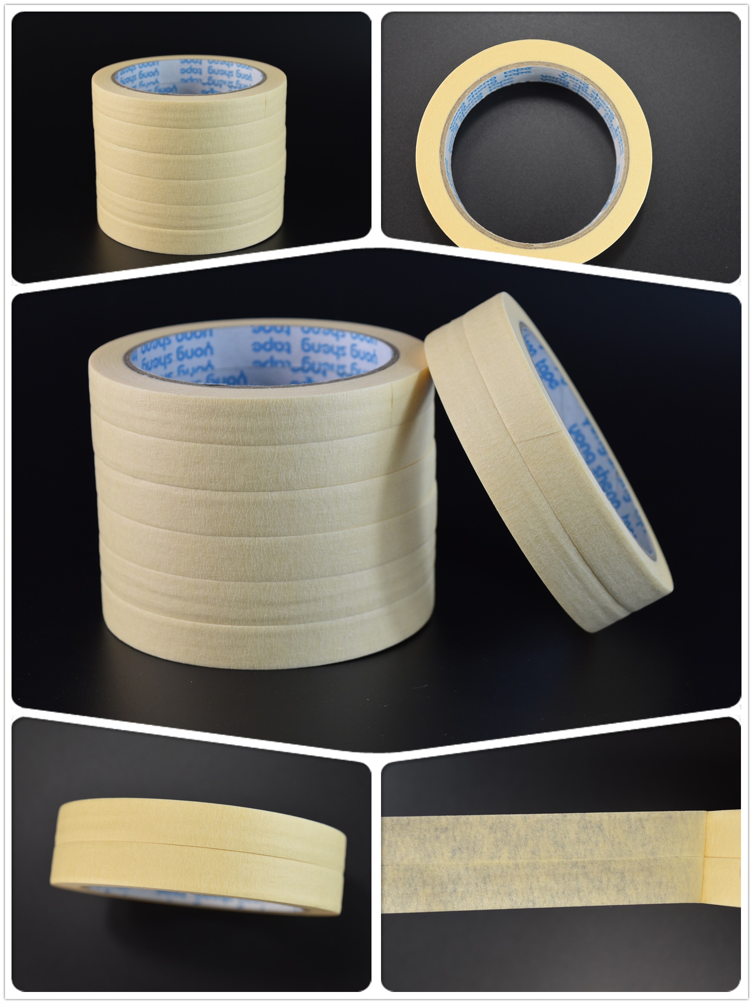美紋紙膠帶是以(yǐ)美紋紙和壓敏膠水(shuǐ)為主要原料,在美紋紙(zhǐ)上塗覆壓敏膠粘劑,另一麵塗以防粘(zhān)材料而製成的卷狀膠(jiāo)粘帶。具有耐高溫、抗化學溶劑佳(jiā)、高粘著力、柔軟服貼和再撕不留殘膠等特性。行業通稱美紋紙壓敏膠粘帶。產品符合(hé)ROHS環保要求(qiú)。英文名MASKING TAPE。