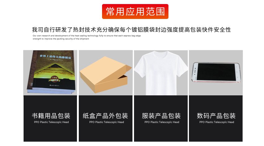 廣泛用於電子(zǐ)、儀表、陶瓷、工藝品、家用電器,自車行,廚房、家具、五金工具製品、玻璃製品及精密儀器等的抗震性緩衝、保護包(bāo)裝。可以防(fáng)止在傳遞過(guò)程中(zhōng)對物(wù)品的擠壓(yā)、震動及摩擦等,對怕擠怕壓物品具有一定的保護作用。此外,通過在原料中加入不同(tóng)的添加劑還可以製造防靜電等各種專用氣(qì)泡袋。防靜電氣(qì)墊袋,用於包裝電子元件、組件,如集成電路板、卡等,既能防止靜電又能起到緩衝防震的作用。