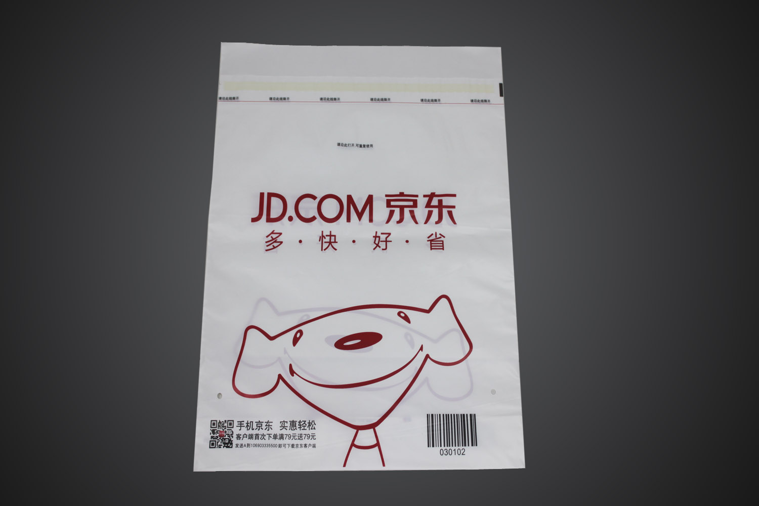 快遞膠袋(dài)材質:低密度聚乙烯(LDPE)通常(cháng)說的PE,高密度聚乙烯(HDPE)通常說(shuō)的PO,快遞膠袋具有成本低,重量輕(qīng)等優點。在國內快(kuài)遞袋一般(bān)都是使用PE作為主材料(liào),而國外般都是使用PE、PO複合作作為(wéi)快遞袋的(de)主材料。